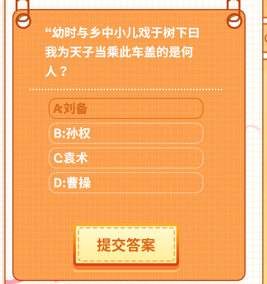 【答题】A幼时与乡中小儿戏于树下曰我为天子当乘此车盖的是何